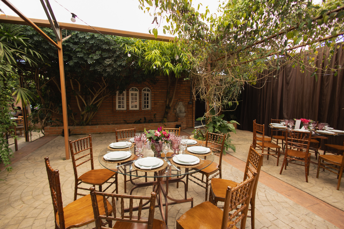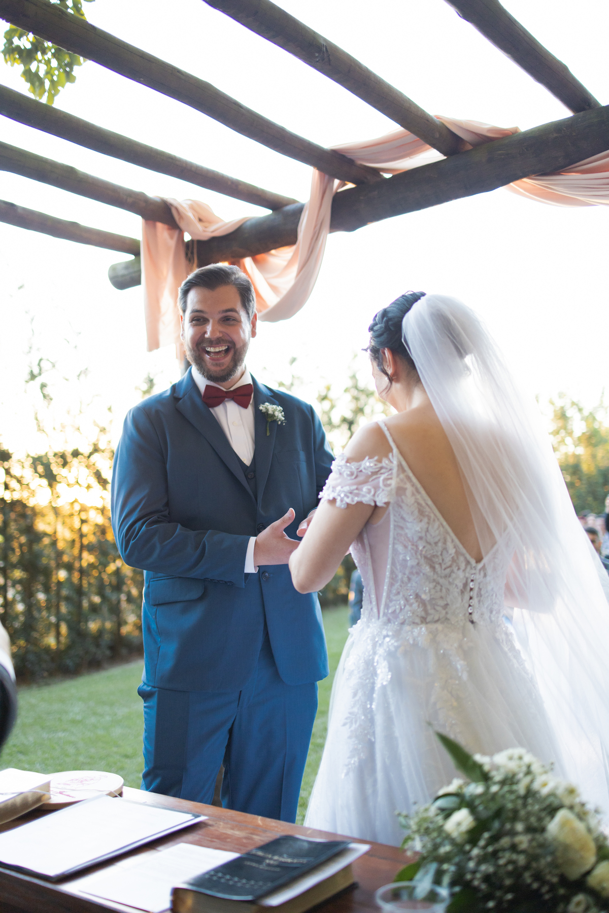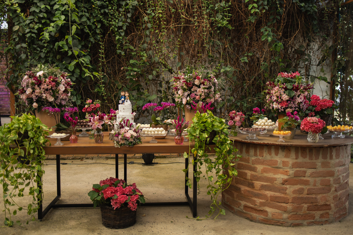 O local que a Natália e o Gustavo escolheram é lindo! Dava a impressão que a gente estava na natureza mesmo em meio a um ambiente interno, tinha muito verde, combinou muito com eles!