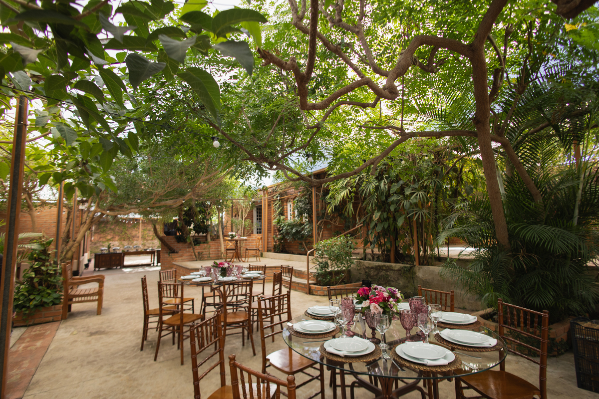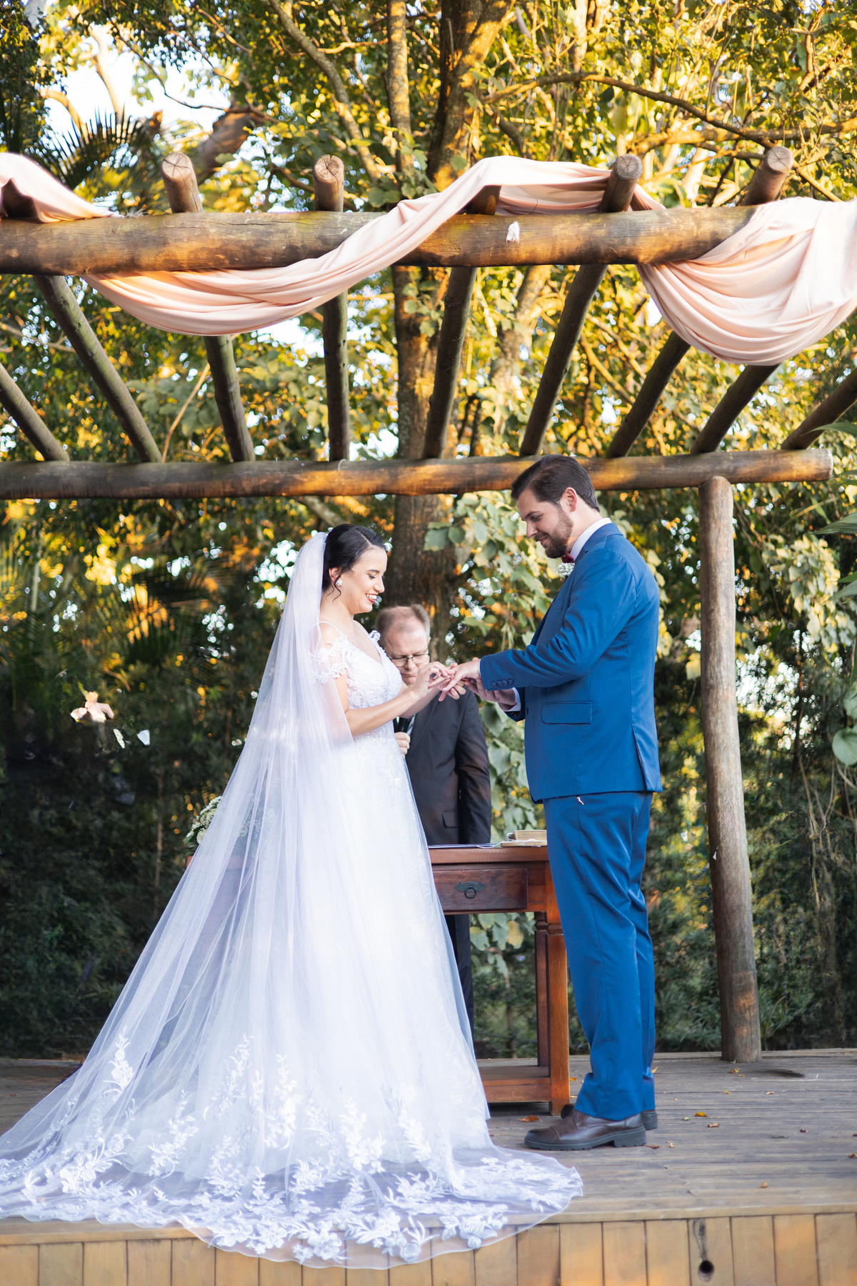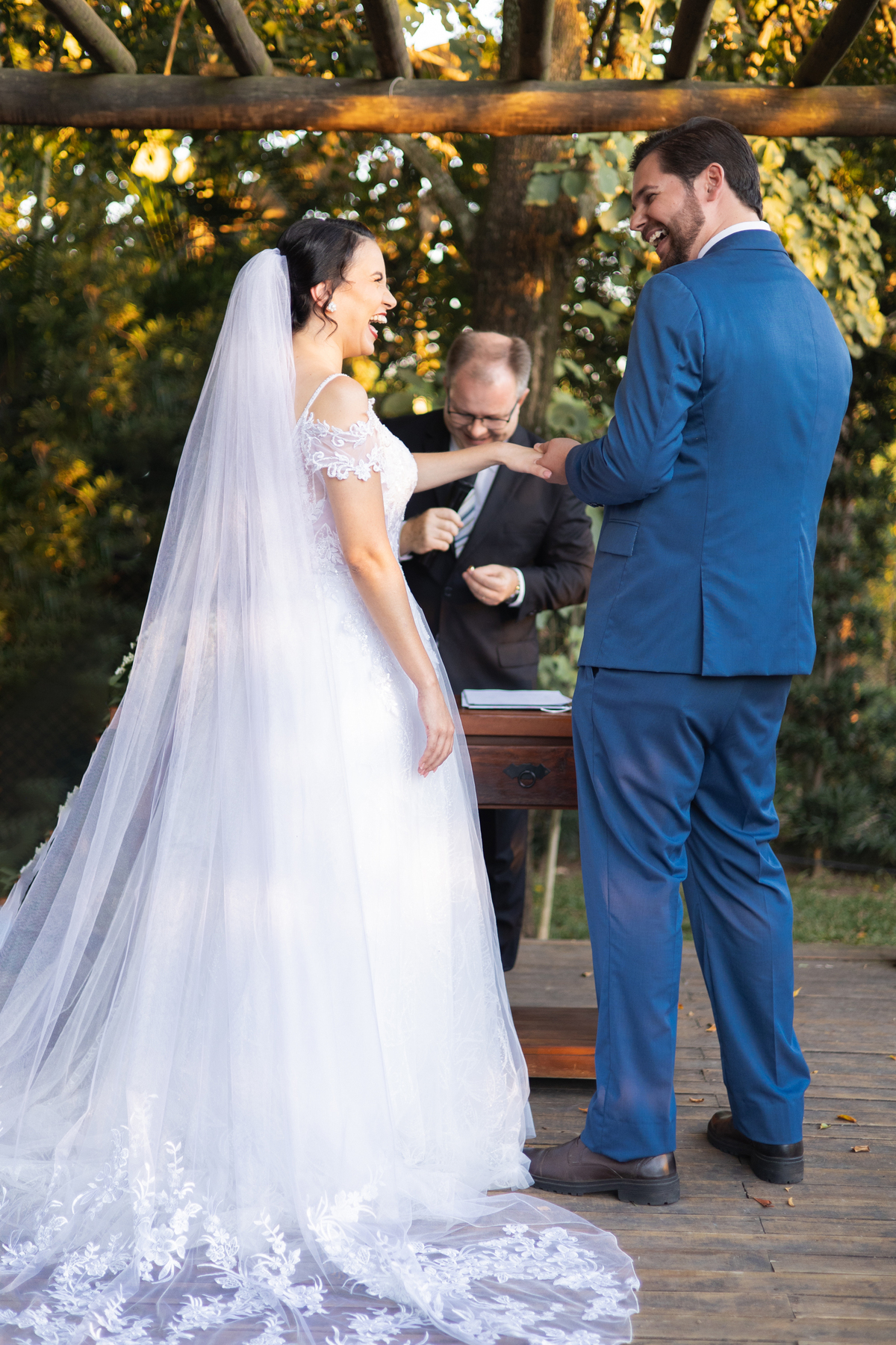 O local que a Natália e o Gustavo escolheram é lindo! Dava a impressão que a gente estava na natureza mesmo em meio a um ambiente interno, tinha muito verde, combinou muito com eles!