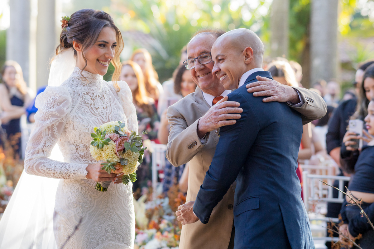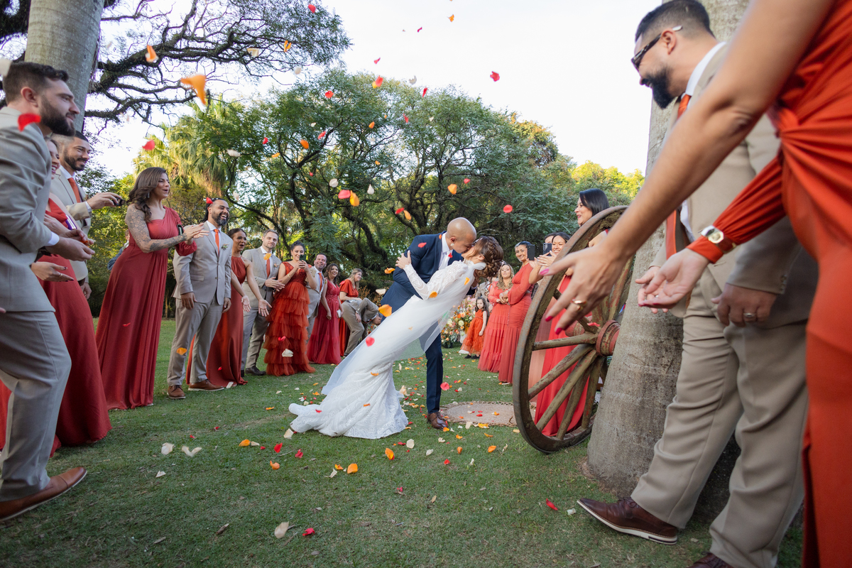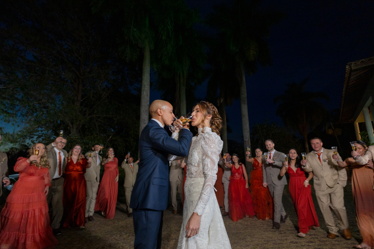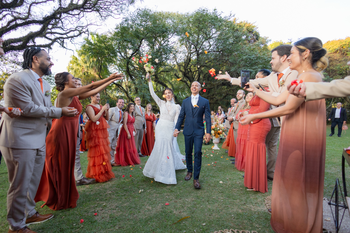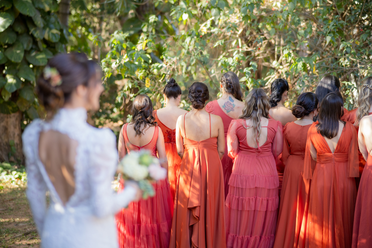 Durante o casamento eles viveram vários momentos como o fist look com as madrinhas, first touch entre o casal e um por-do-sol de tirar o folego. Acompanhe: