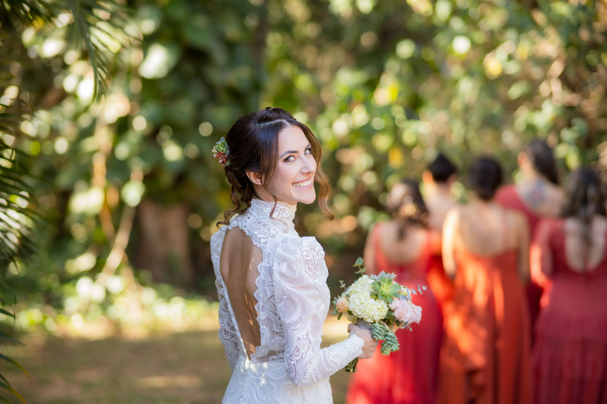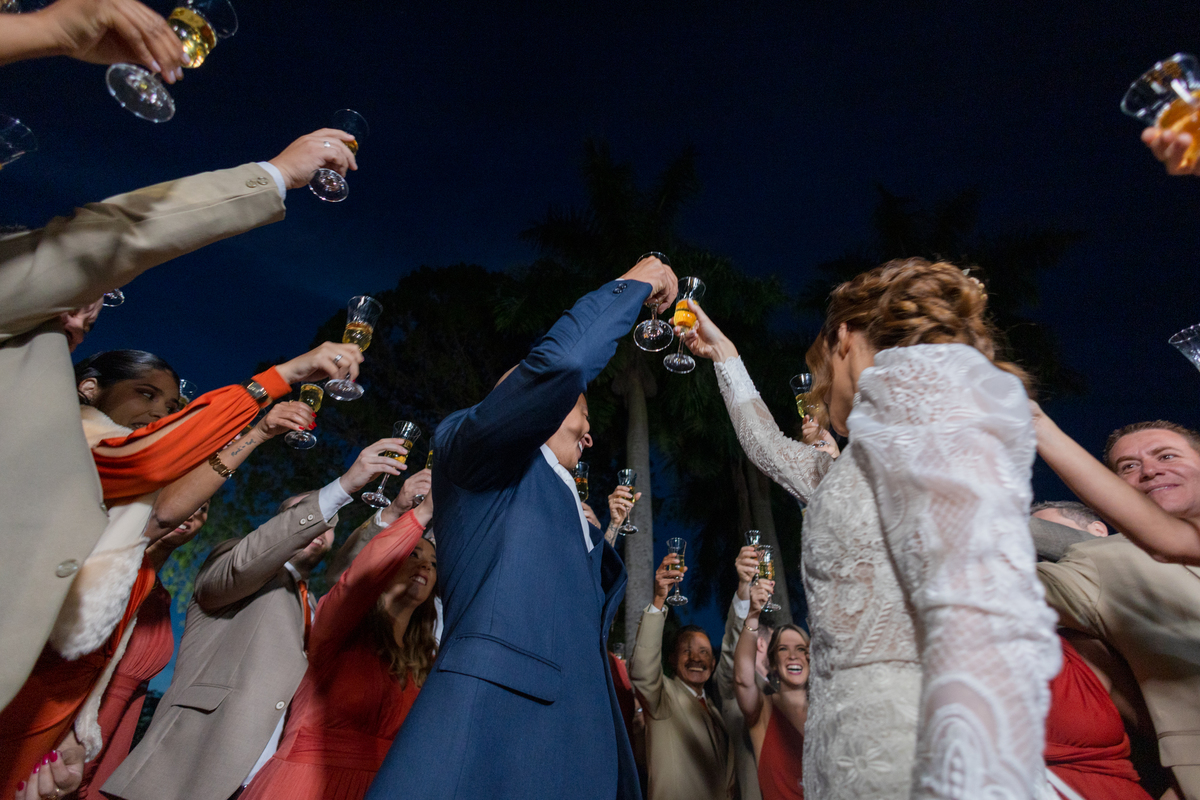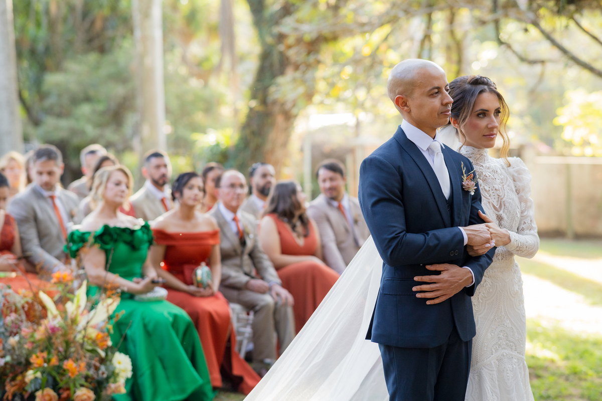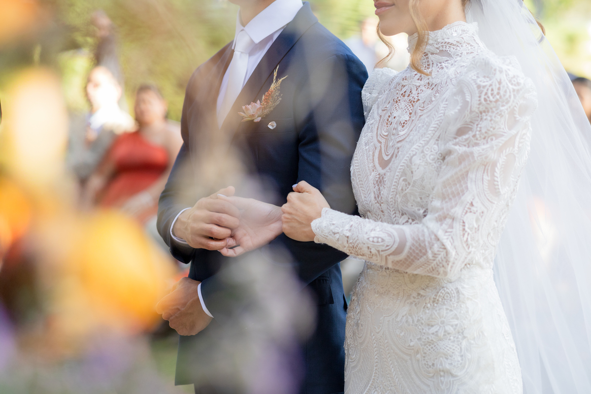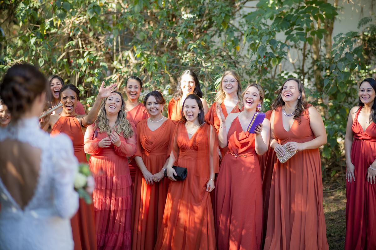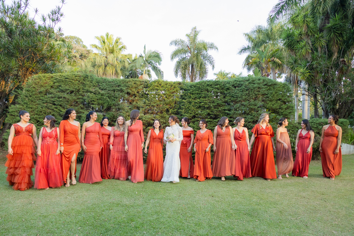 Durante o casamento eles viveram vários momentos como o fist look com as madrinhas, first touch entre o casal e um por-do-sol de tirar o folego. Acompanhe: