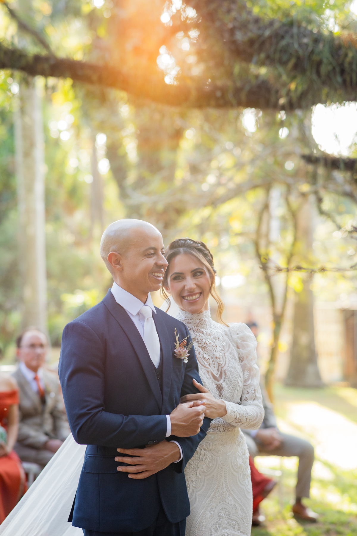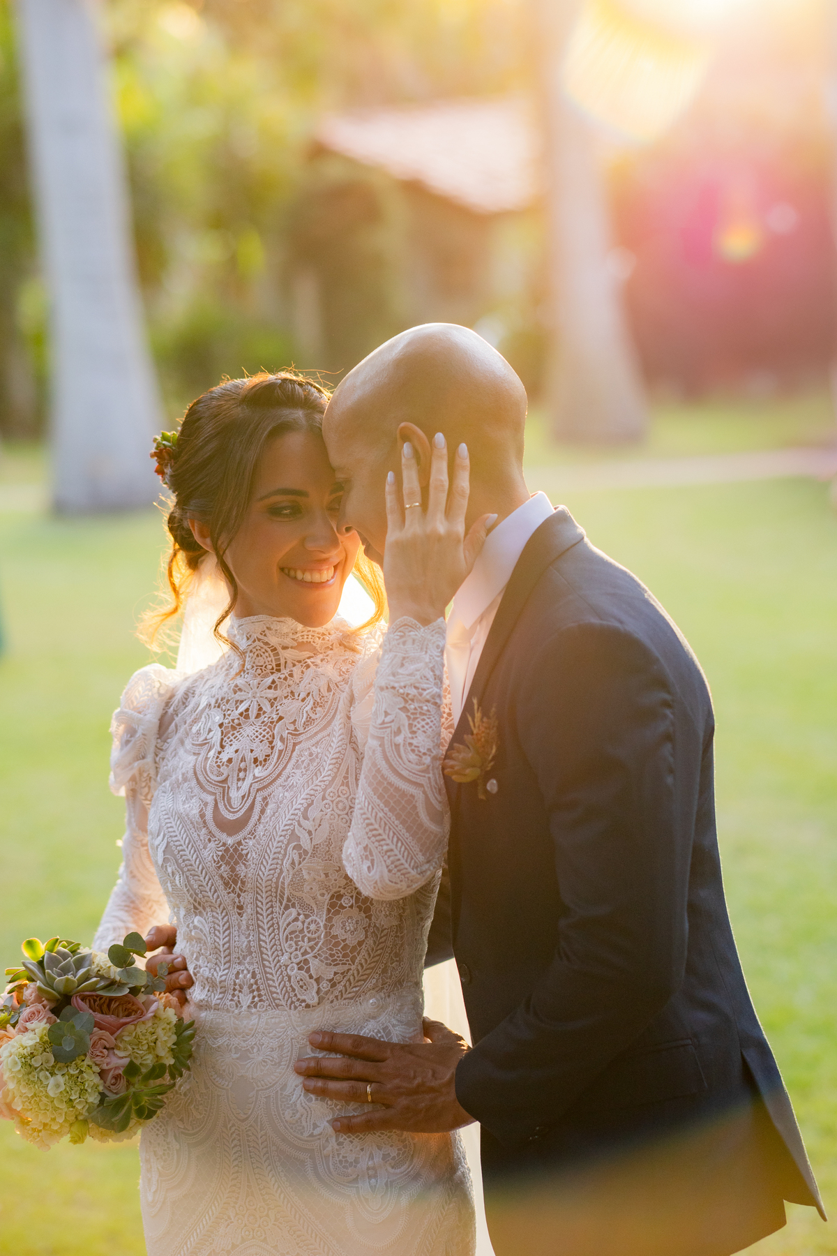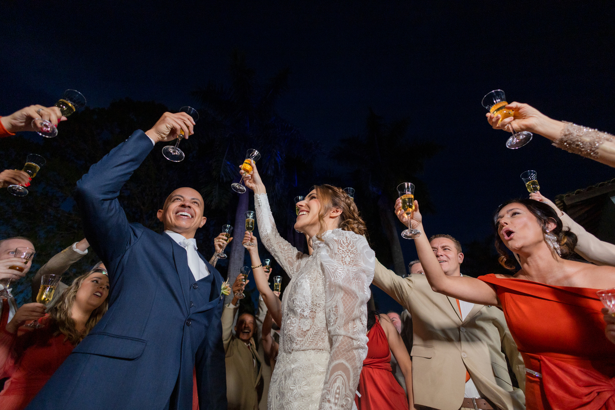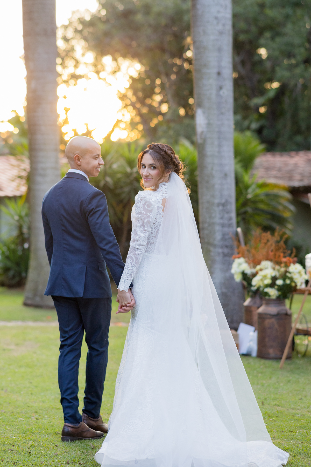Durante o casamento eles viveram vários momentos como o fist look com as madrinhas, first touch entre o casal e um por-do-sol de tirar o folego. Acompanhe: