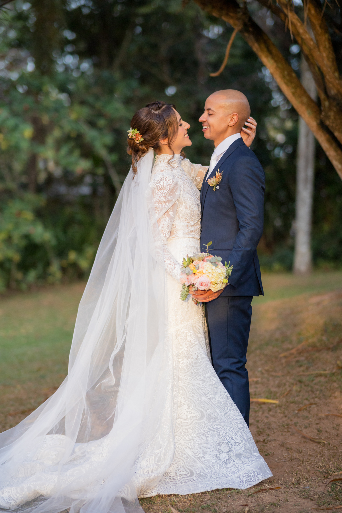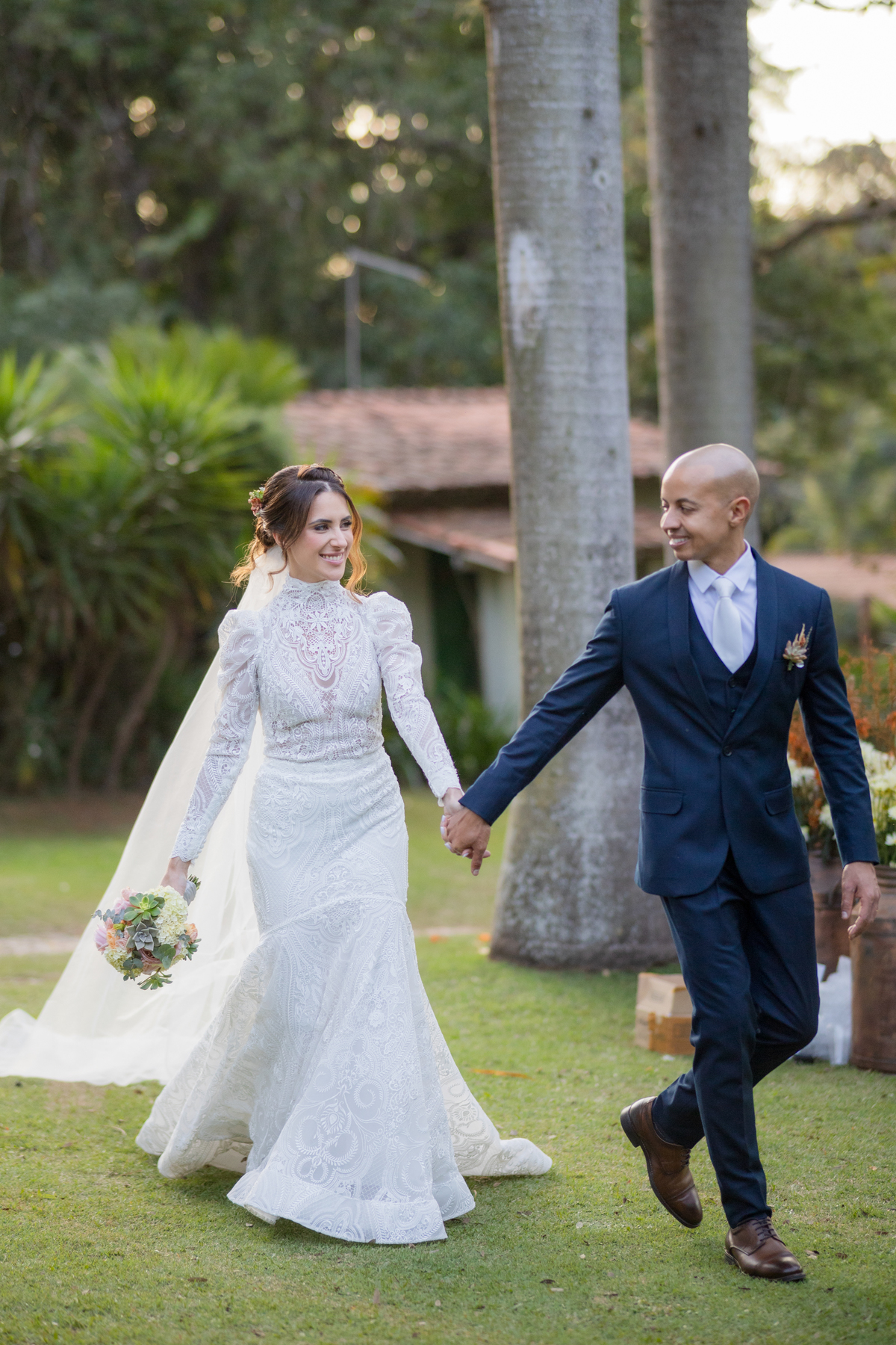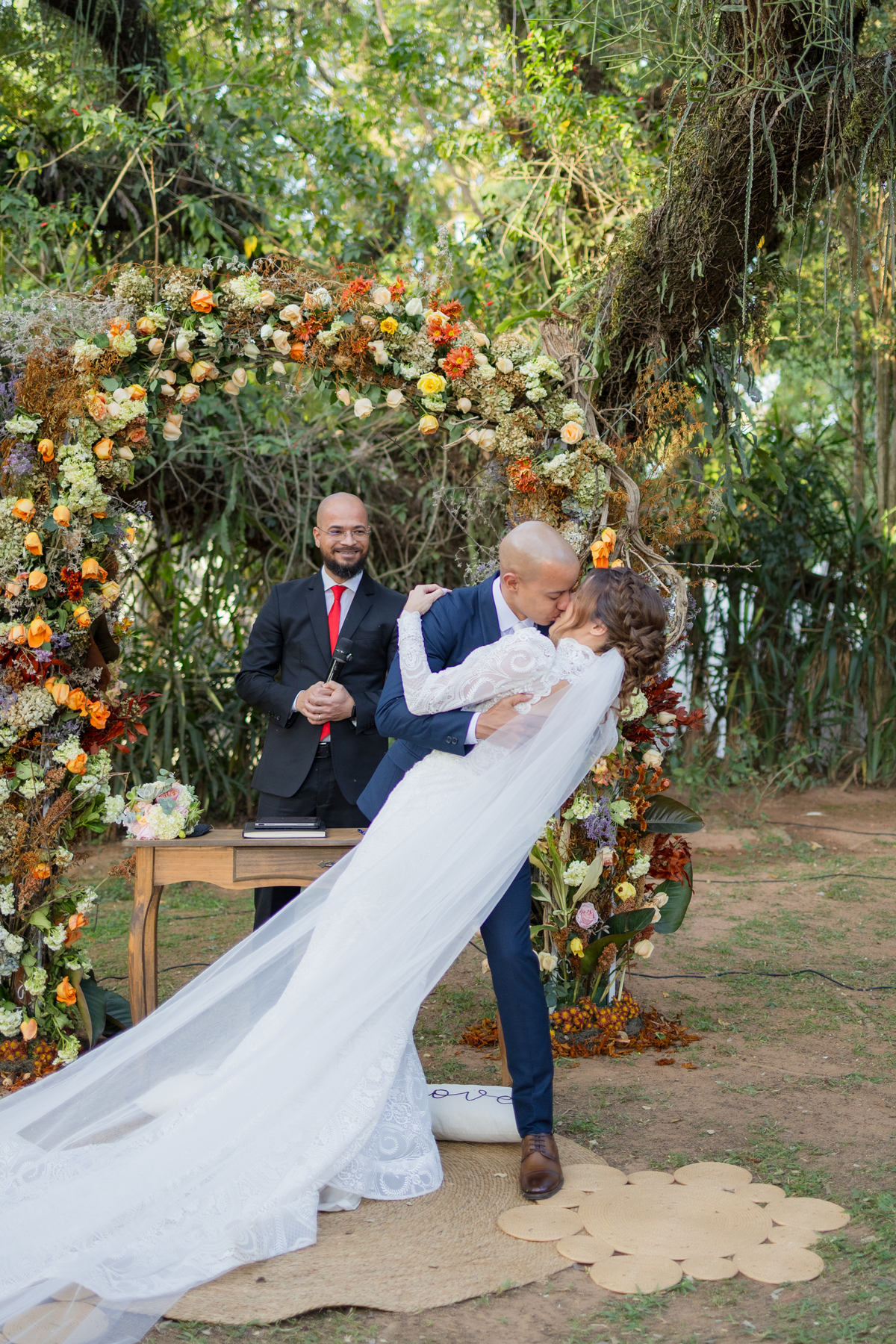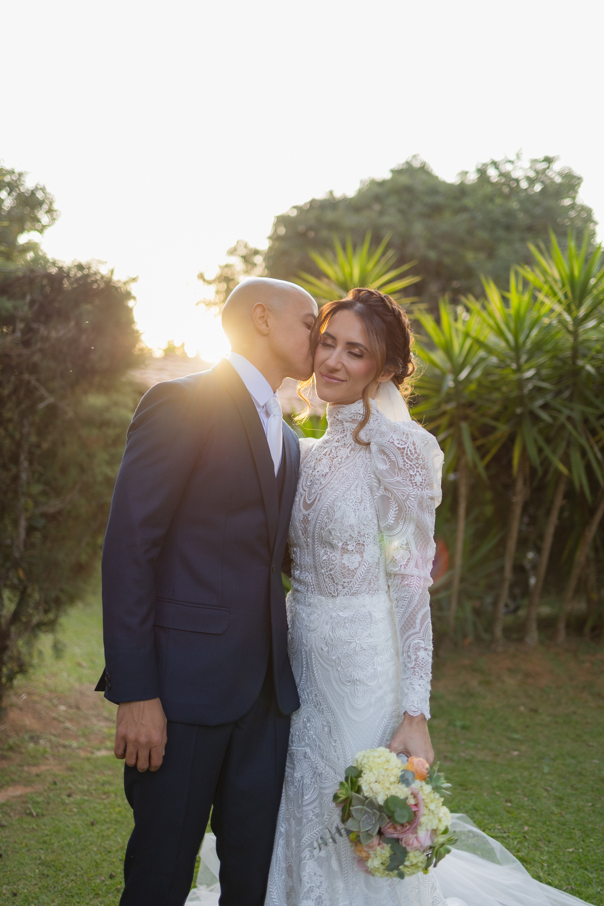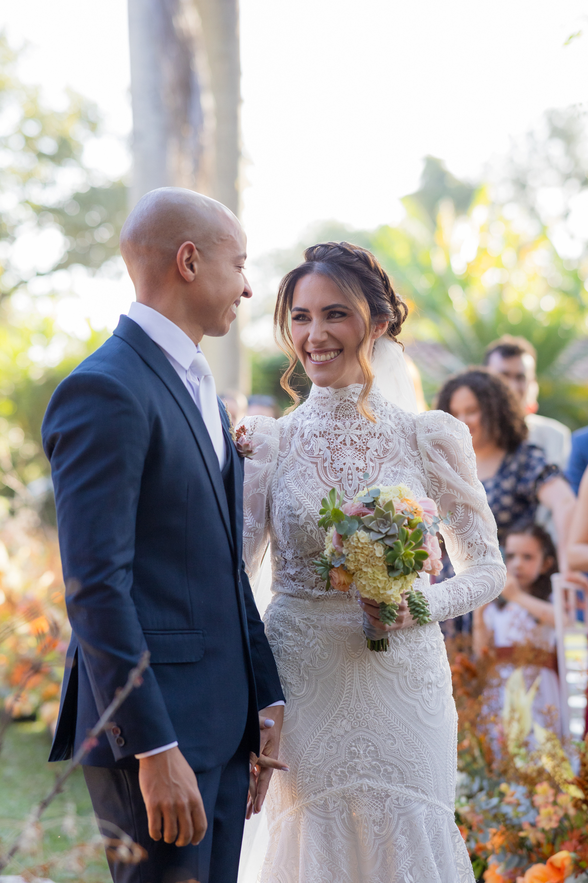Durante o casamento eles viveram vários momentos como o fist look com as madrinhas, first touch entre o casal e um por-do-sol de tirar o folego. Acompanhe: