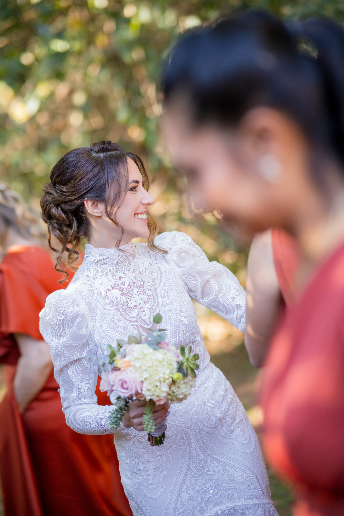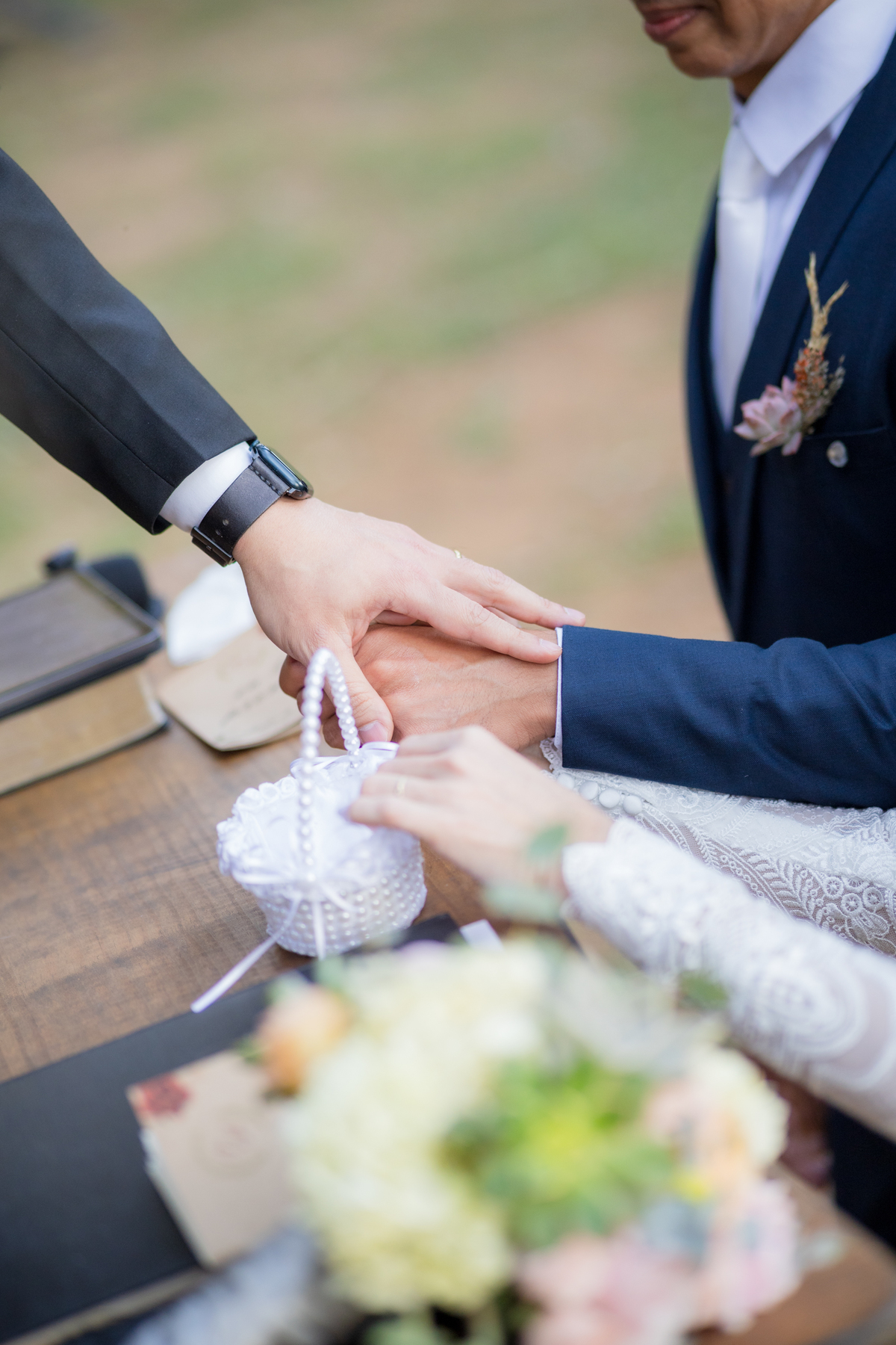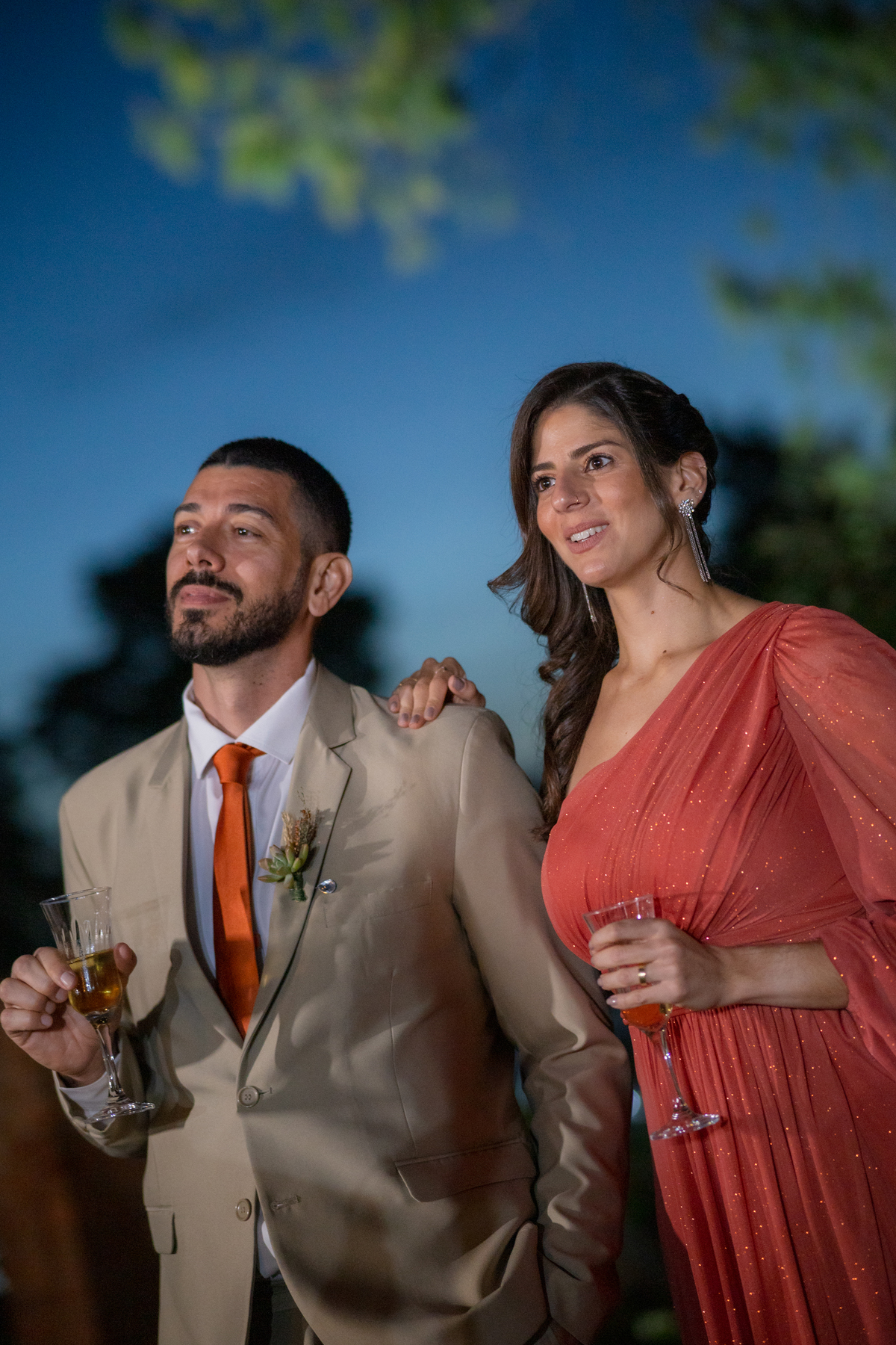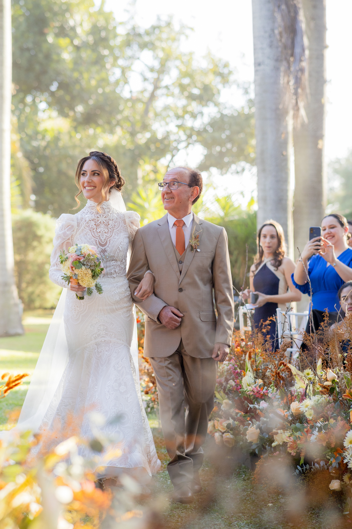 Durante o casamento eles viveram vários momentos como o fist look com as madrinhas, first touch entre o casal e um por-do-sol de tirar o folego. Acompanhe: