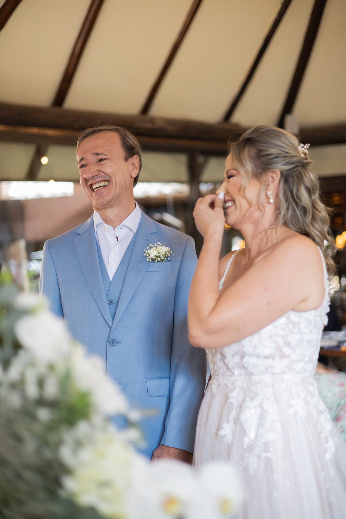 Casamento é realmente sobre compartilhar a felicidade e apoiar o outro em sua jornada. É um compromisso mútuo de cuidar, respeitar e nutrir o bem-estar e a alegria do parceiro. Quanta emoção foi neste dia! Algumas lágrimas de alegria e claro muitos sorrisos.