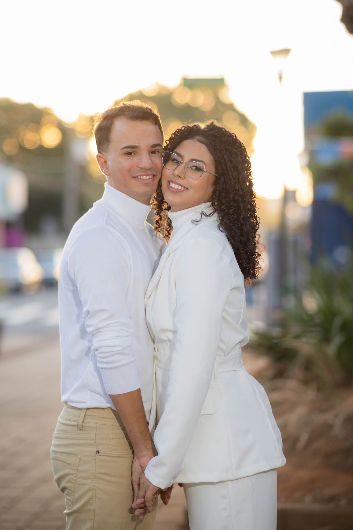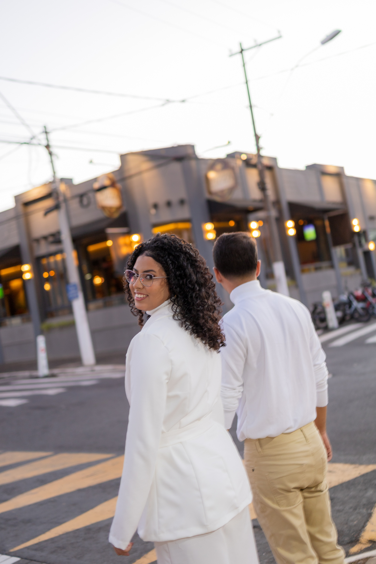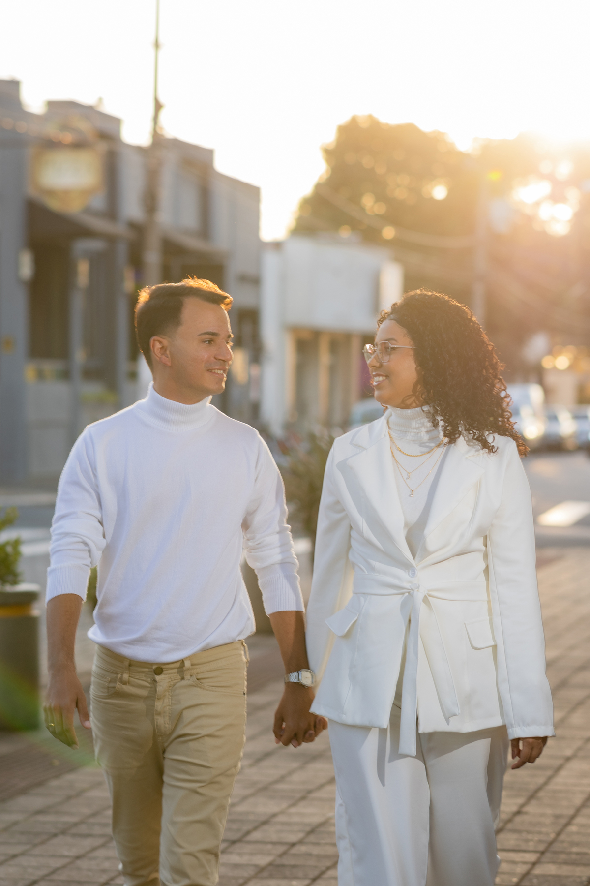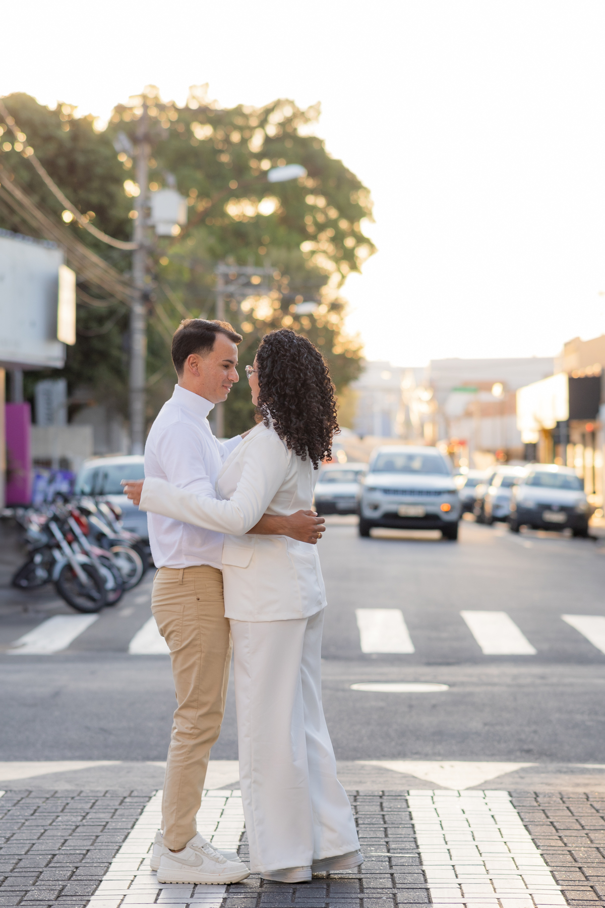 Com uma luz suave no fim da tarde, caminhamos pelas ruas do centro, explorando texturas, cores e construções que fazem parte da identidade local. A espontaneidade e a conexão entre os dois renderam cliques cheios de leveza e amor — exatamente como um ensaio pré-casamento em Santa Bárbara d’Oeste deve ser.