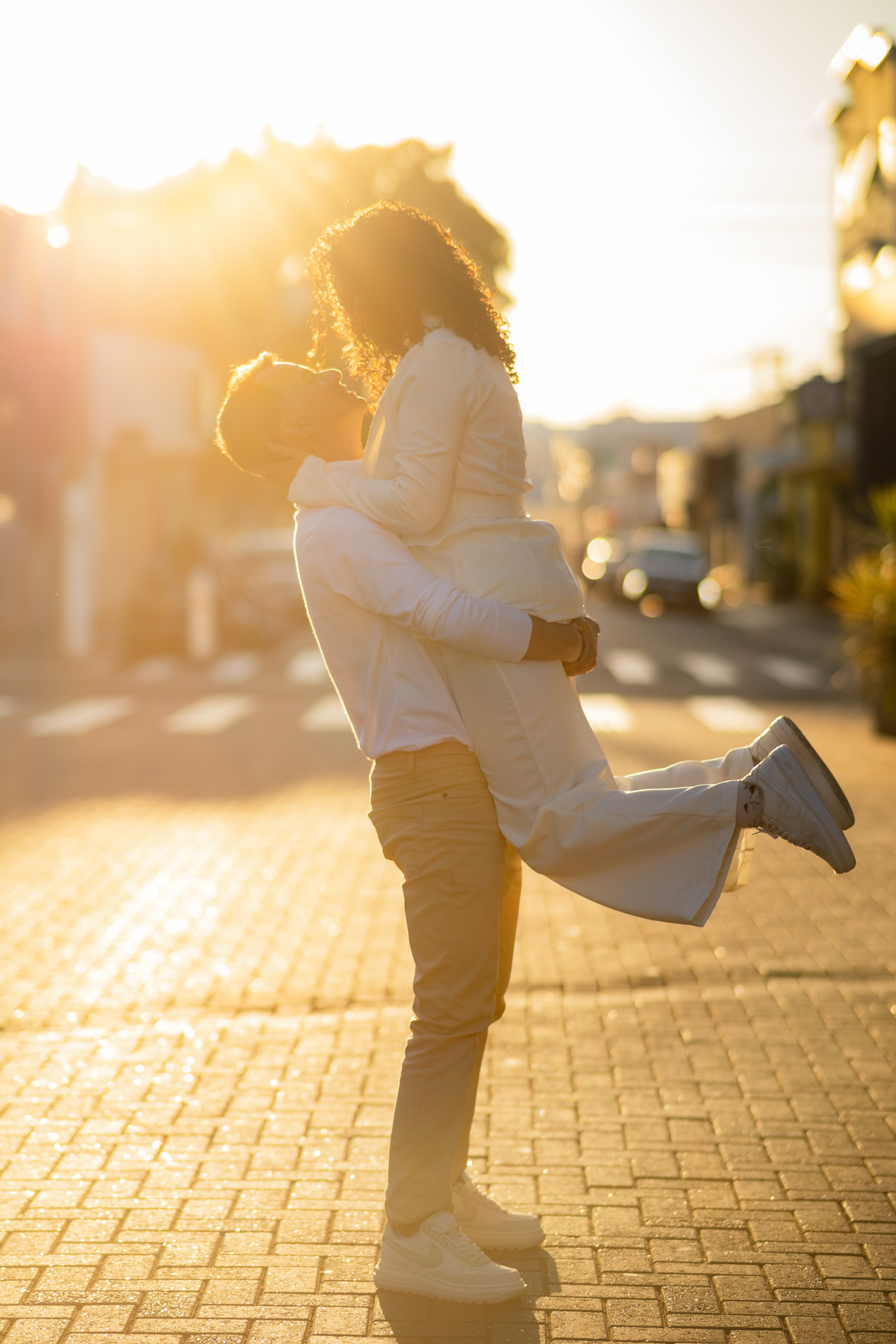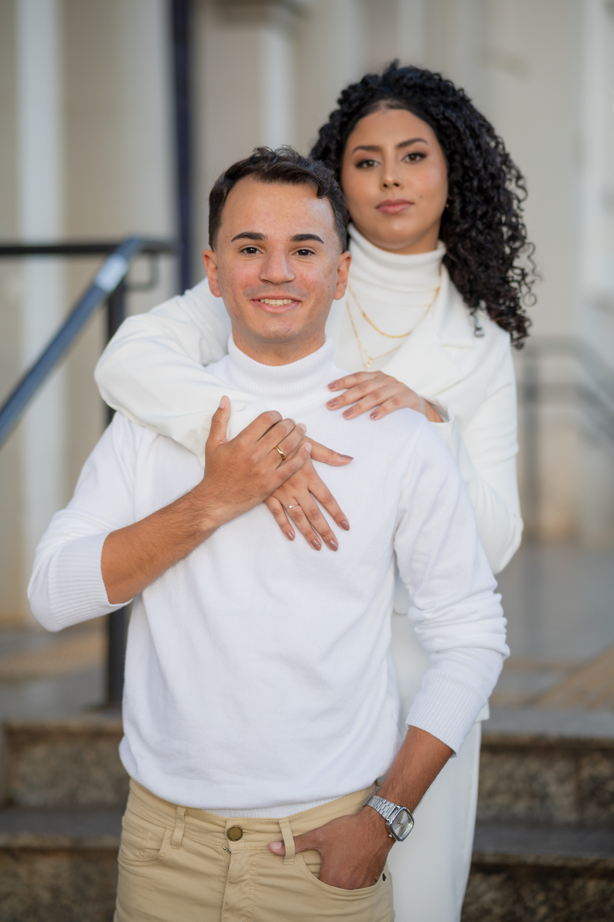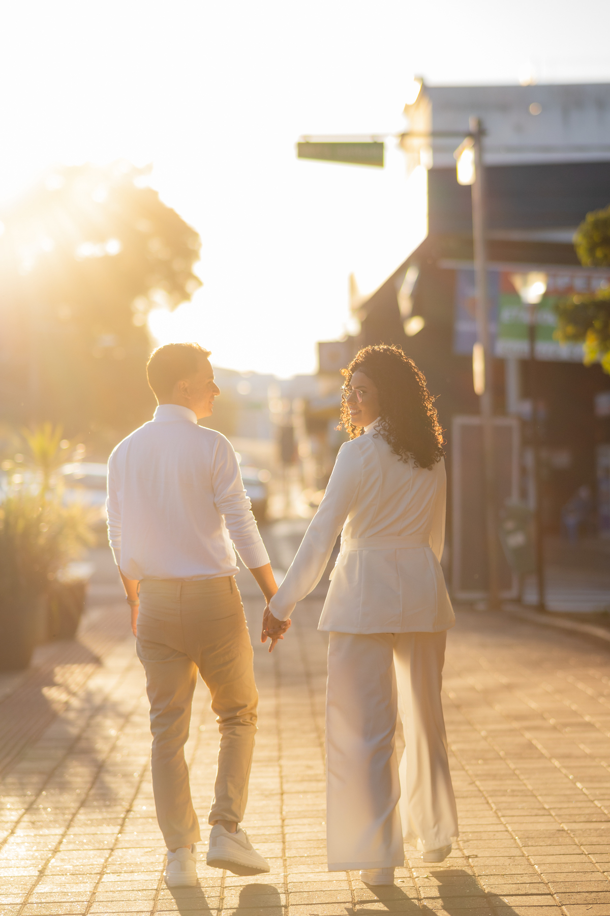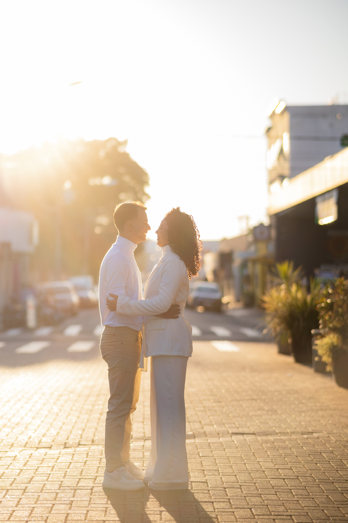 Com uma luz suave no fim da tarde, caminhamos pelas ruas do centro, explorando texturas, cores e construções que fazem parte da identidade local. A espontaneidade e a conexão entre os dois renderam cliques cheios de leveza e amor — exatamente como um ensaio pré-casamento em Santa Bárbara d’Oeste deve ser.
