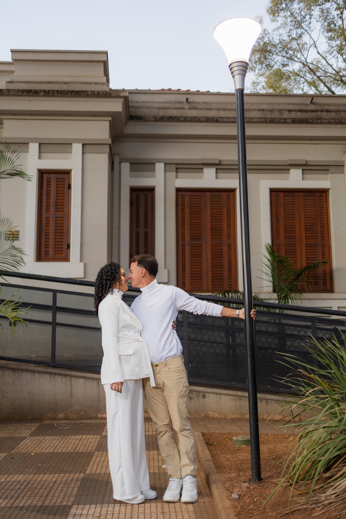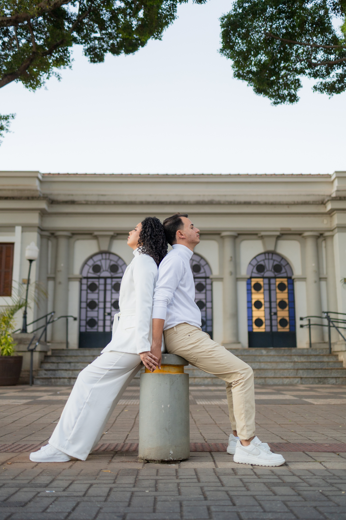 Fizemos o ensaio pré-wedding da Melissa e do Daniel em um lugar que tem muita história e charme: o centro de Santa Bárbara d’Oeste. Esse casal incrível escolheu um cenário urbano com um toque clássico, e foi lindo ver como cada cantinho da cidade combinou com a personalidade deles.